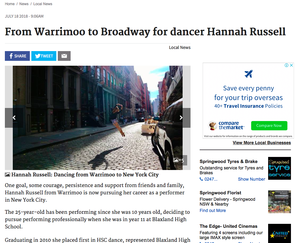 From Warrimoo to Broadway for Dancer Hannah Russell